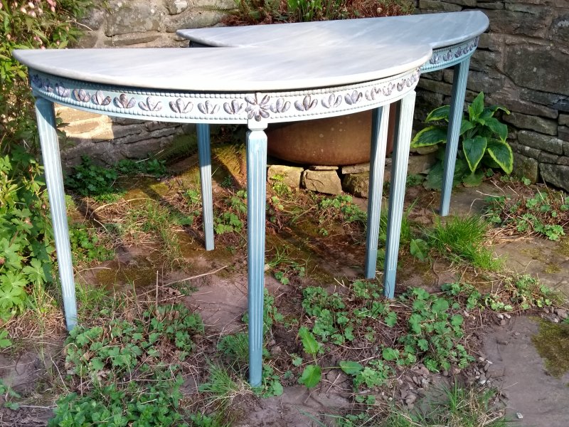 Pair of scallop shell console tables