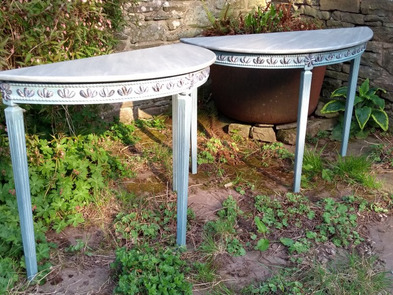Pair of mussel-shelled tables